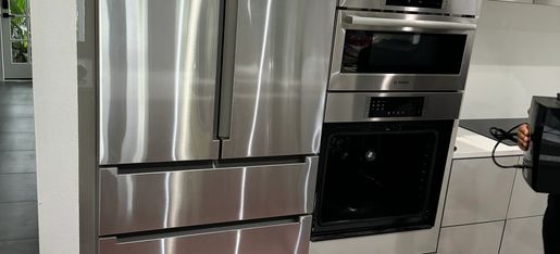Water quality matters; hard water leaves mineral deposits that affect ice makers, dishwashers, and steam ovens. If you see spots, scale, or slow fill, ask us about filters or descaling service.